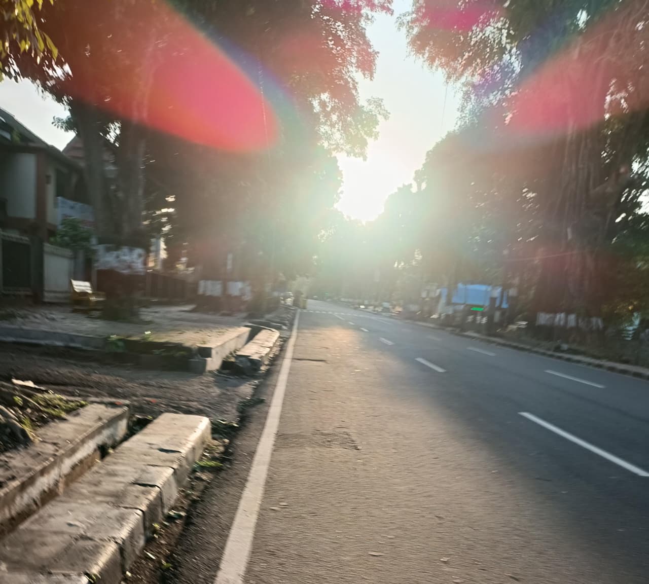 Soalnya biar bagaimanapun, kondisi di luar cukup tidak kondusif, angin begitu kencang sampai beberapa ranting di tempat tinggal saya berjatuhan. Lalu muncul satu atau dua pembenaran, seperti “Ah bahaya ini, nanti kalau ketimpa pohon di Udayana gimana?” atau “Ah mungkin bisa besok saja, soalnya  kemarin kan sudah lari juga.” Demikianlah rasa malas selalu mencoba memengaruhi saya di pagi hari. Meski begitu, keputusan untuk berlari sudah dibuat jauh-jauh hari, maka saya pun memakai sepatu.